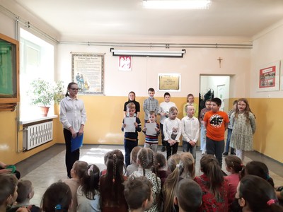 „Niektórzy lubią poezję…. Będzie tych osób chyba dwie na tysiąc” napisała nasza znakomita noblistka – Wisława Szymborska. Aby trochę poezję „odczarować” i udowodnić, że nie tylko można, ale wręcz należy po nią sięgać, nasza szkoła włączyła się w obchody Światowego Dnia Poezji, który przypada na 21 marca. Na szkolnym apelu uczniowie klas 1-8 zaprezentowali swoją interpretację wierszy z motywem wiosennym, jako że 21 marca to przecież długo wyczekiwany, pierwszy dzień wiosny. Wszystkim młodym artystom serdecznie dziękujemy i mocno liczymy na to, że tak pięknie przywołana wiosna zostanie już z nami aż do wakacji .